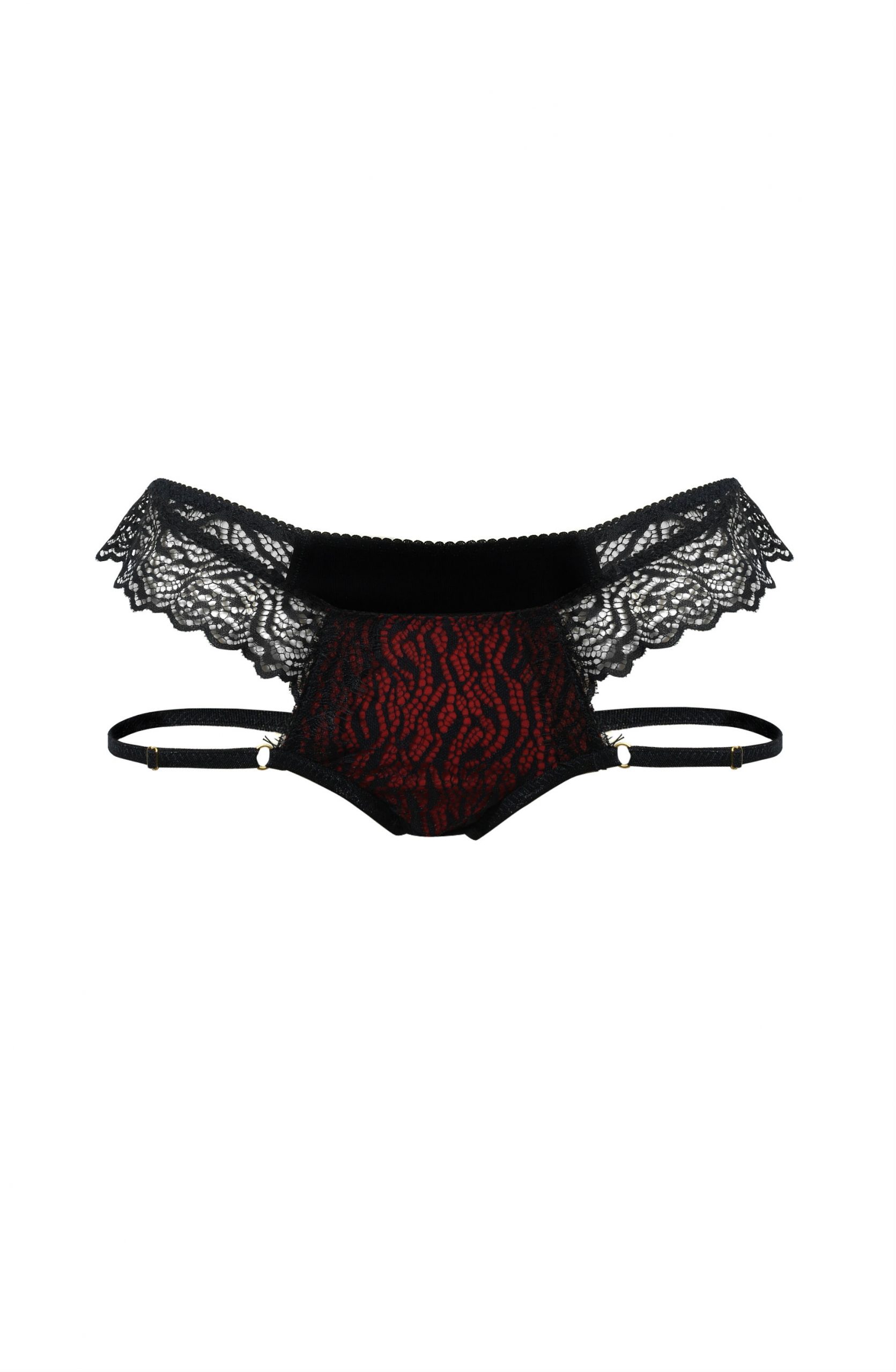 Matching brief to the Devil Bra. Decorated with eyelash lace3 and fabulous fully adjustable leg strap detail.